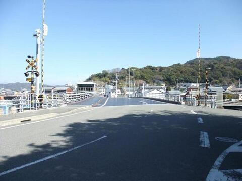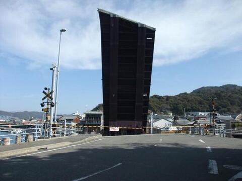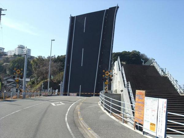 警報機が鳴り始めると遮断機が下がり、その橋はゆっくりと上がり始めます。