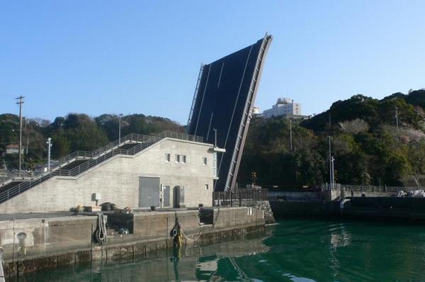 日本最古の掘り込み式港として知られる「手結港」入り口に架けられている可動橋(跳ね橋)。