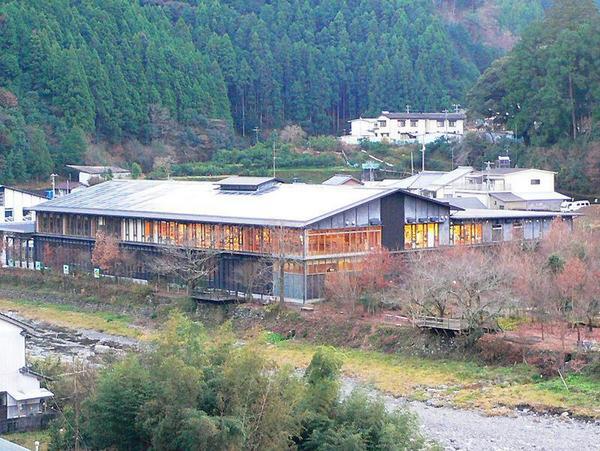 ごっくん馬路村(ゆず飲料)の工場は、木をふんだんに使った建物で、無料で工場見学ができます。工場の周りは木々に囲まれ、癒されます。