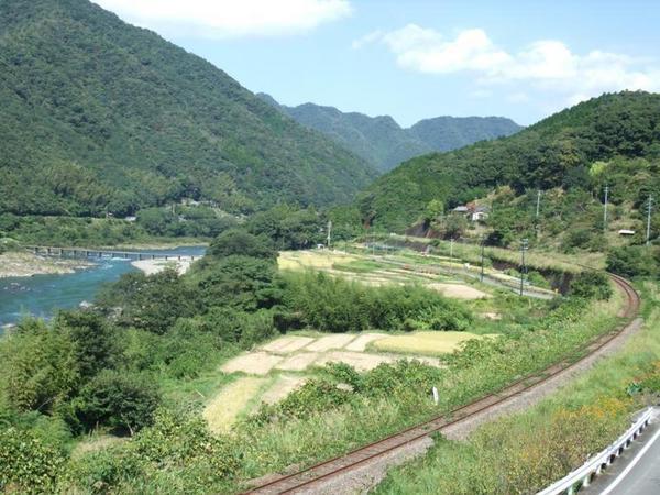 四万十川に沿って、棚田、生活道、JR予土線と様々な風景が広がります。