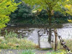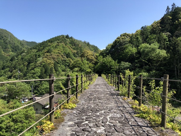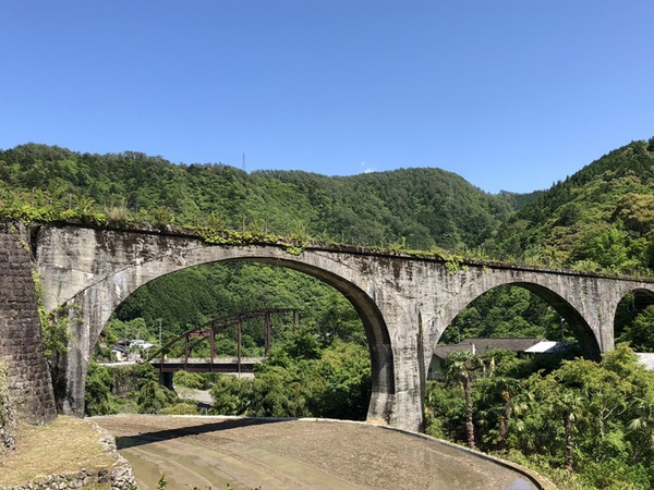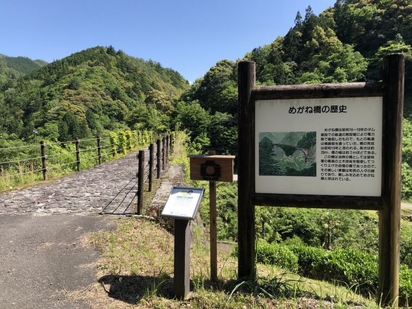 山に囲まれた静かな郷に架かる、アーチが印象的な橋。