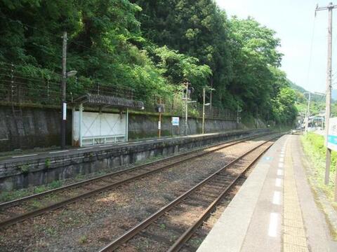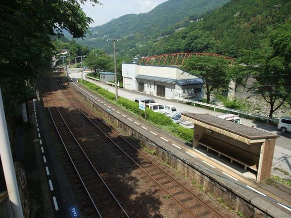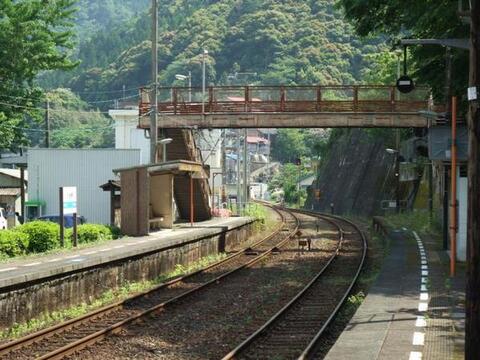 四国山地のど真ん中(徳島県との県境)、山と吉野川に挟まれた、山肌に刻み込まれた線路と駅の佇まい。