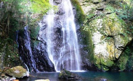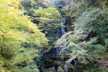 四国カルストの麓にある紅葉スポットしても人気の滝。