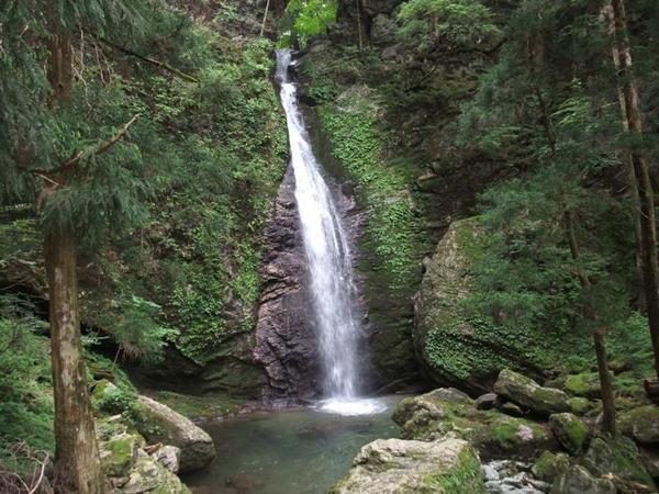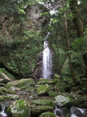 - 梶ヶ森七合目にある龍王の滝は、日本の滝百選にも選ばれた名瀑。