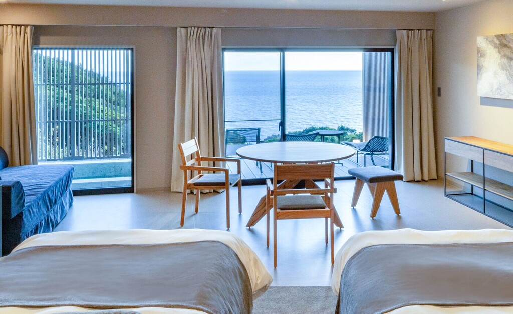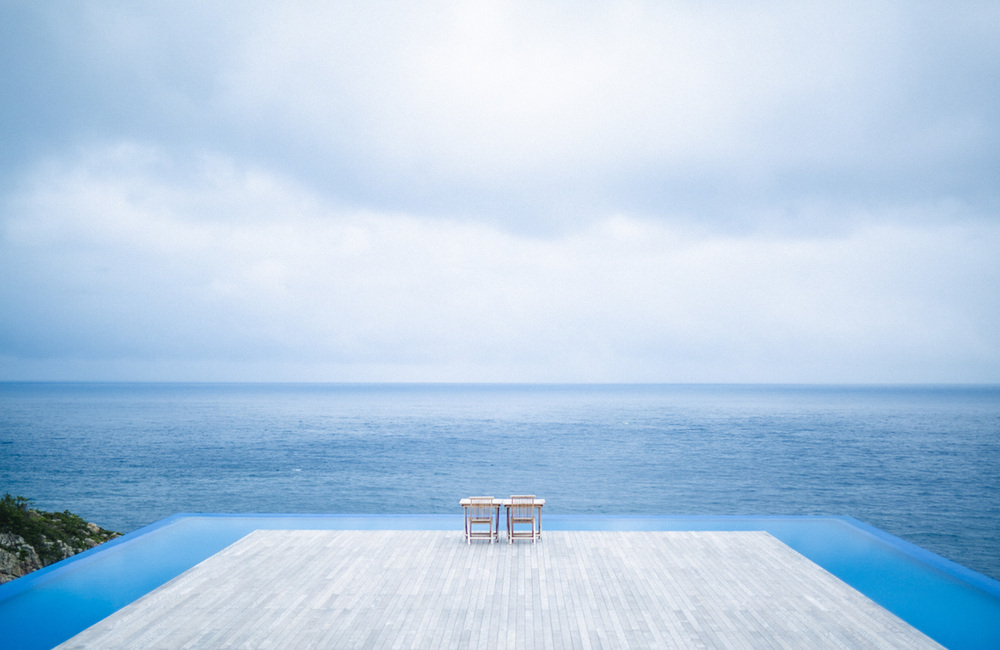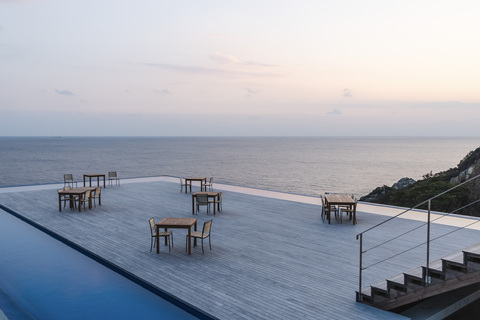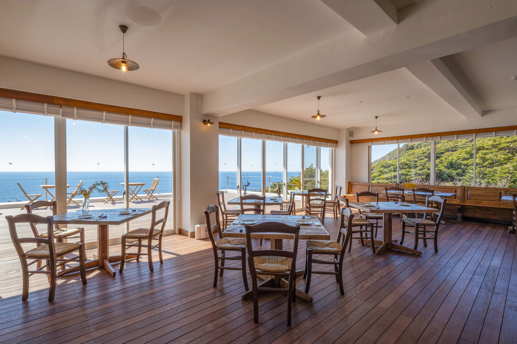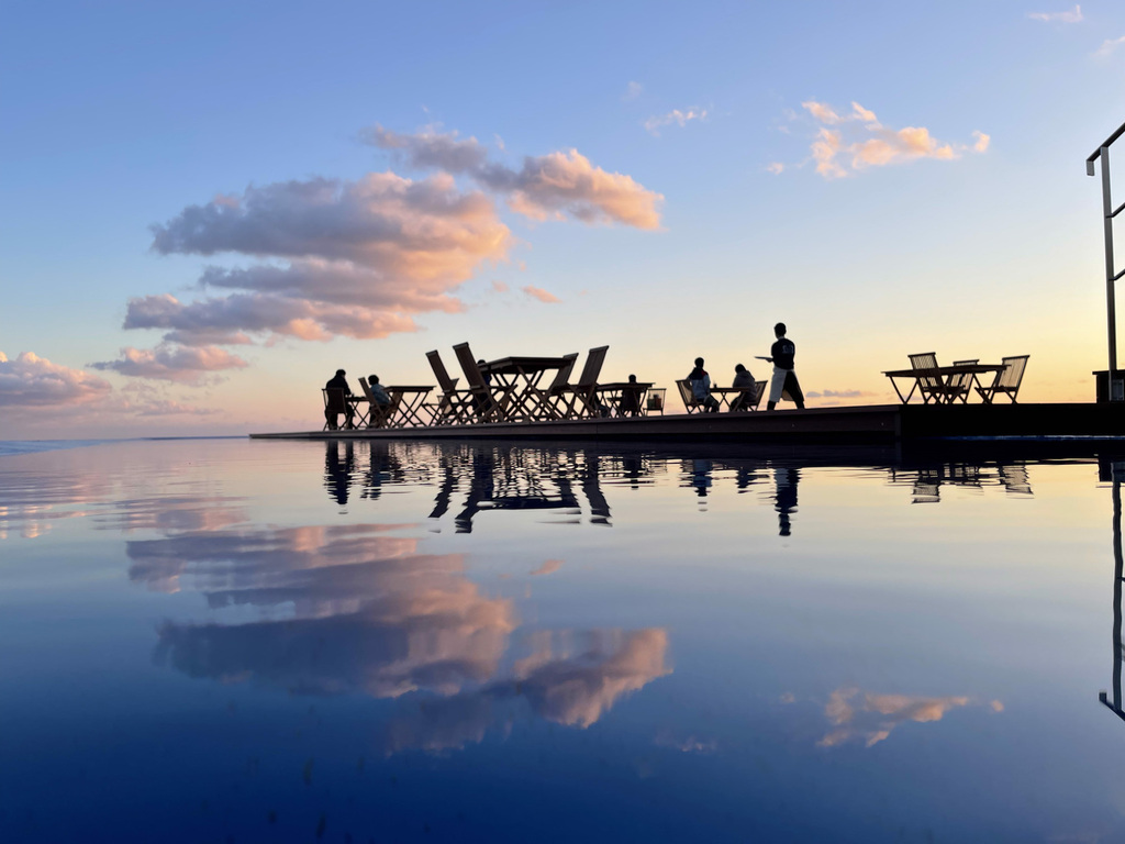 - レストランのテラスに出ると、太平洋に繋がっているような絶景が見られるリゾートホテル。