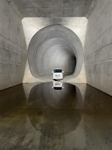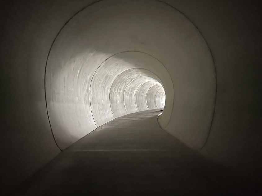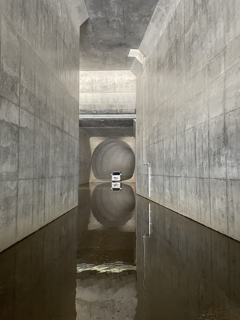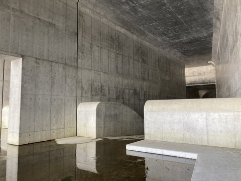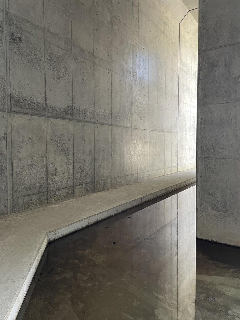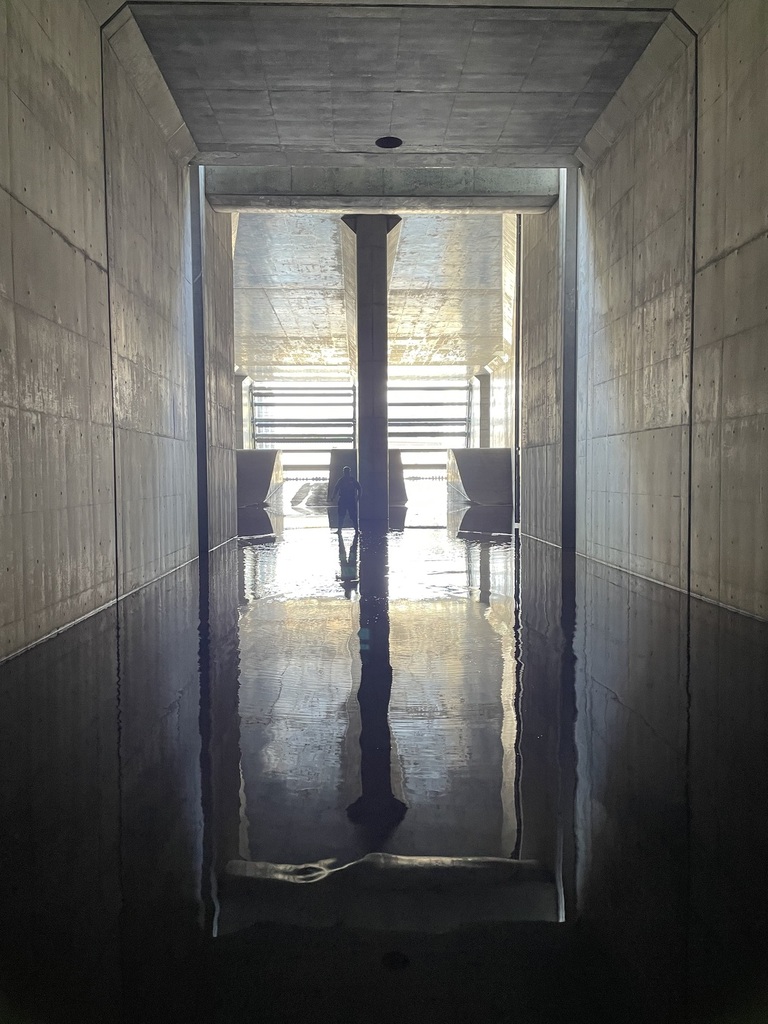 コンクリートで覆われた無機質な内部は、異世界や近未来の空間にも思えます。