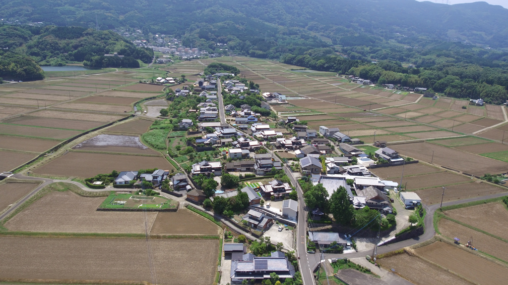 里小路の西側から東方向を見ると、なだらかな傾斜の小路と生垣、その先に伊万里湾が、また東側から西方向を見ると、生垣の先に国見の山々と夕日の美しさを眺められる。