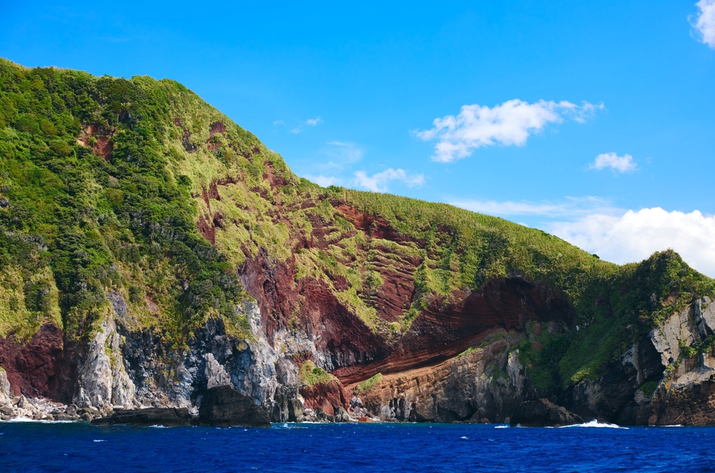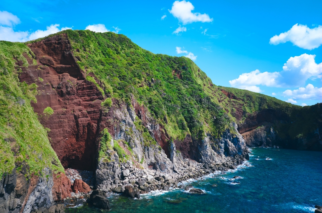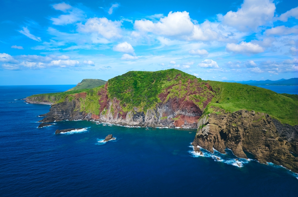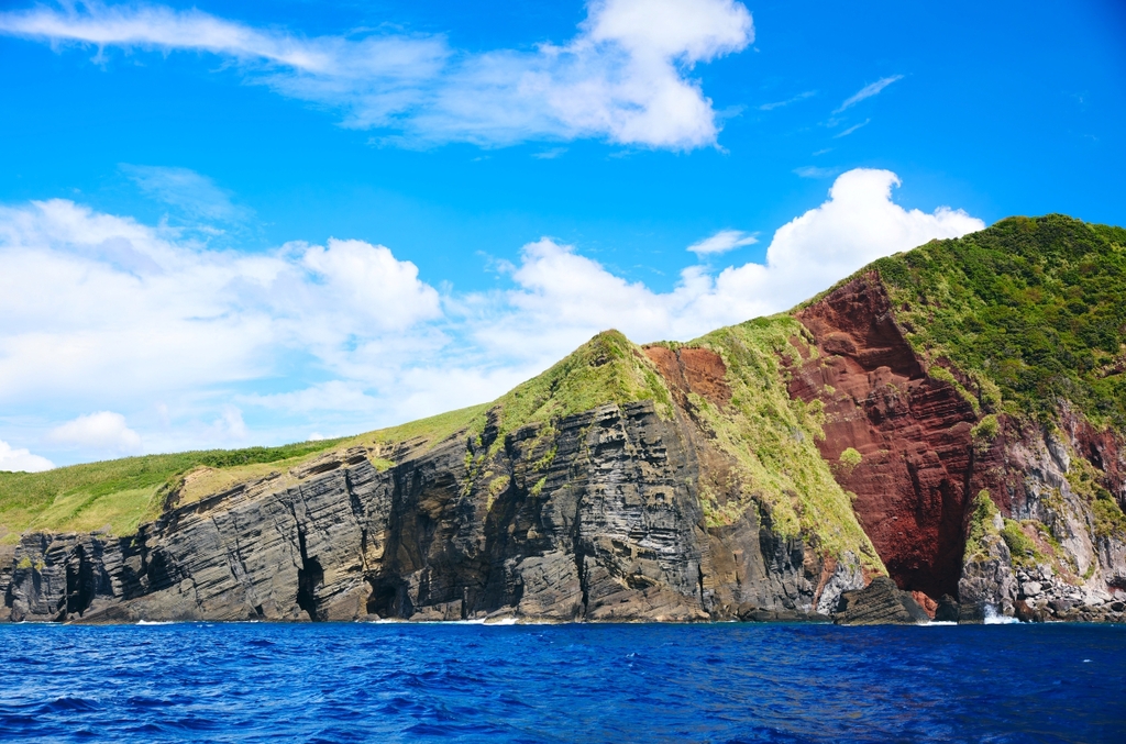 東シナ海の激しい波浪を受ける島の西海岸の侵食は、両火山とも火口付近まで削り取られて垂直に海食崖の絶壁を作っています。そして、爆発した火山のすさまじさや内部構造、放出物を貫く岩頸岩脈などが色鮮やかで、まるで火山の模型を見るようです。この海食崖は、学術的にも世界でも珍しい貴重な地学的資料といえます。