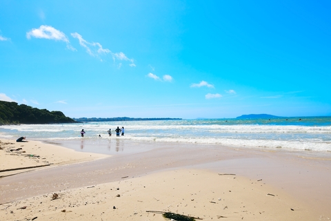 - 福江の中心地から車で20分程でアクセスでき、エメラルドグリーンの海と白い砂浜が美しい香珠子海水浴場。夏季シーズンは福江から直行バスが走り、地元でも人気のお手軽ビーチです。