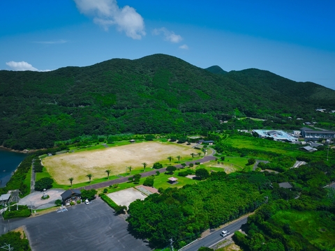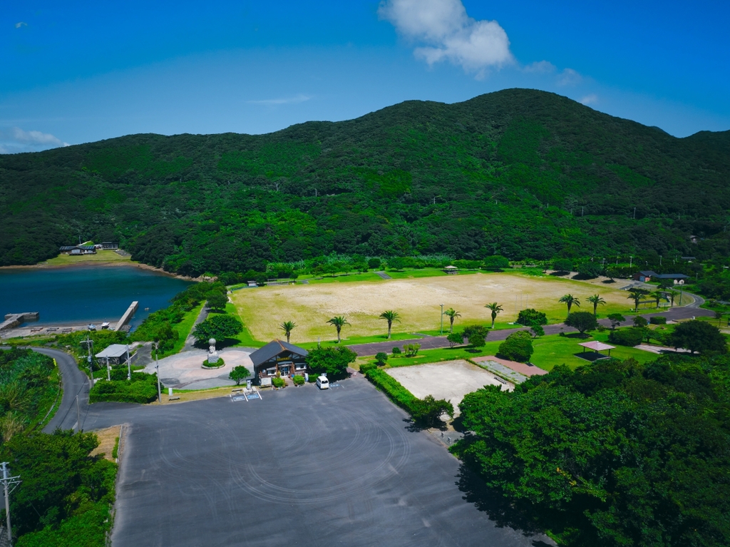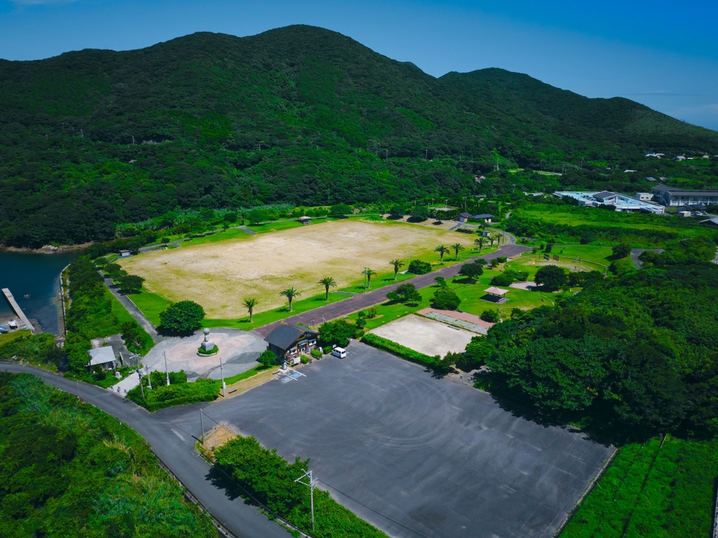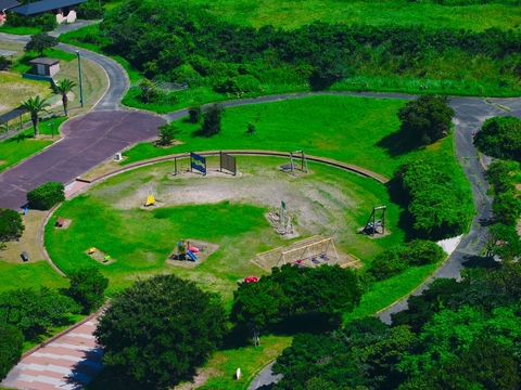 福江島の南西端近くにある玉之浦カントリーパーク。広いグラウンドやテニスコート、グラススキー、アスレチックなどの設備がある総合公園で、大人から子供まで楽しめます。また、井持浦の入り江に面し、景色も素晴らしく、ゆっくりくつろげます。