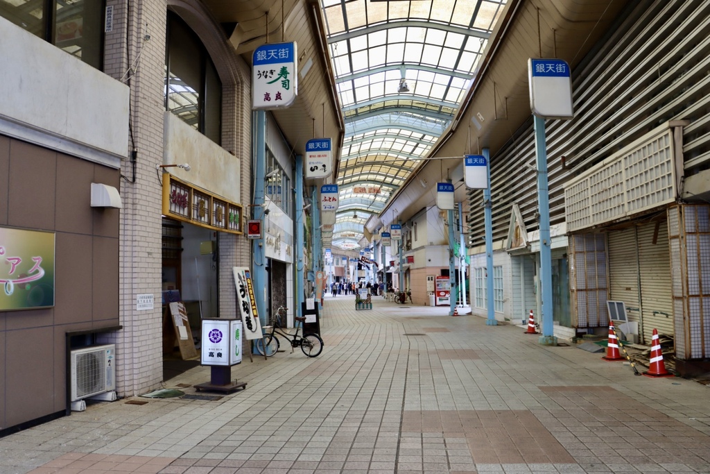 天草市の中央にある、全長約200mの商店街。天草島内唯一の全開アーケード商店街。中央にステージもある。撮影実績あり。
