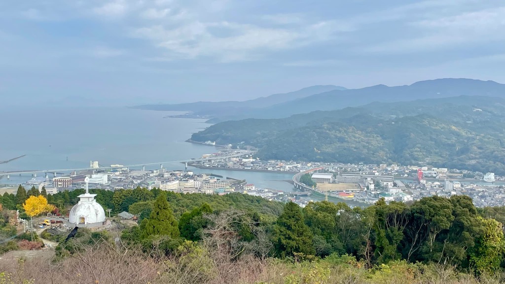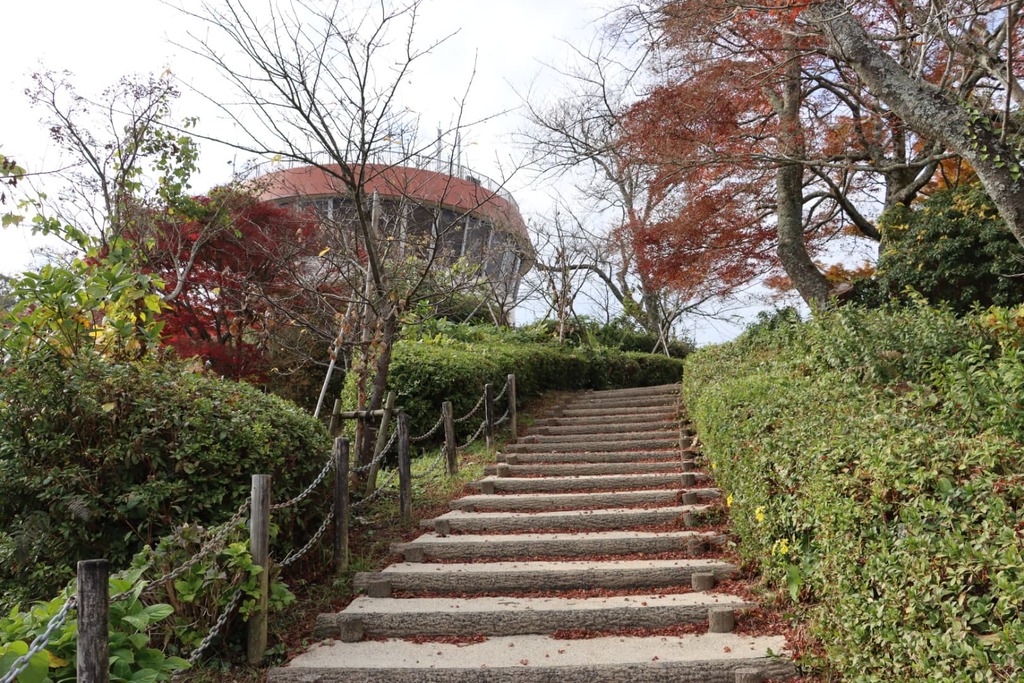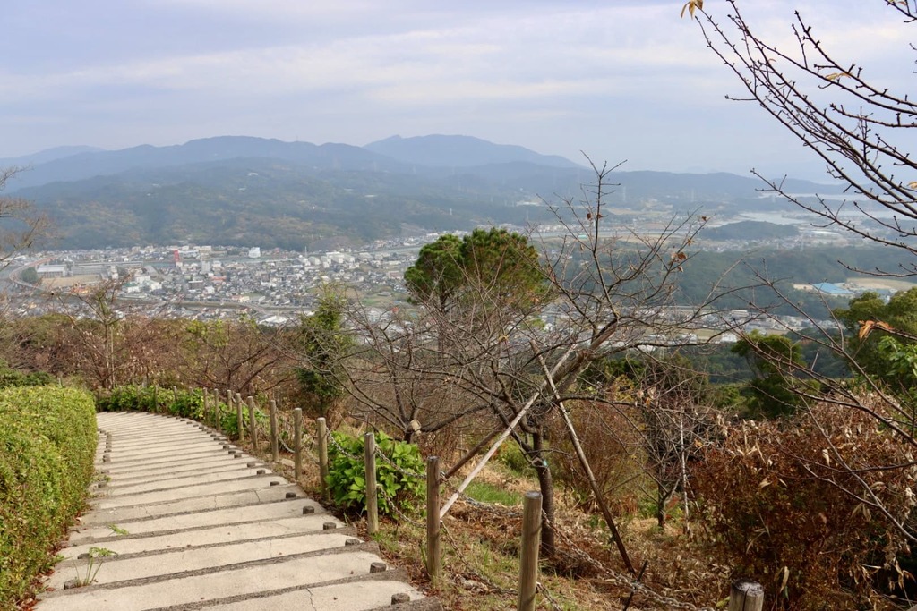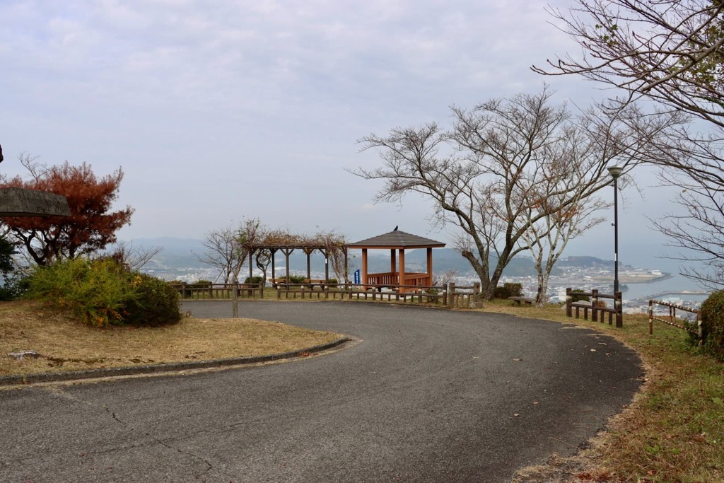 - 旧本渡市街地を見渡せるほか、北は雲仙普賢岳、南は不知火海に浮かぶ島々の眺望が楽しめる。公園内にはカワヅサクラなど約100本の桜が植わっており、開花時期の2~4月上旬頃には展望台から市街地と満開の桜を一望することができる。トレッキングコースもあり、軽い登山も可能。