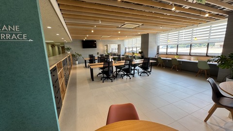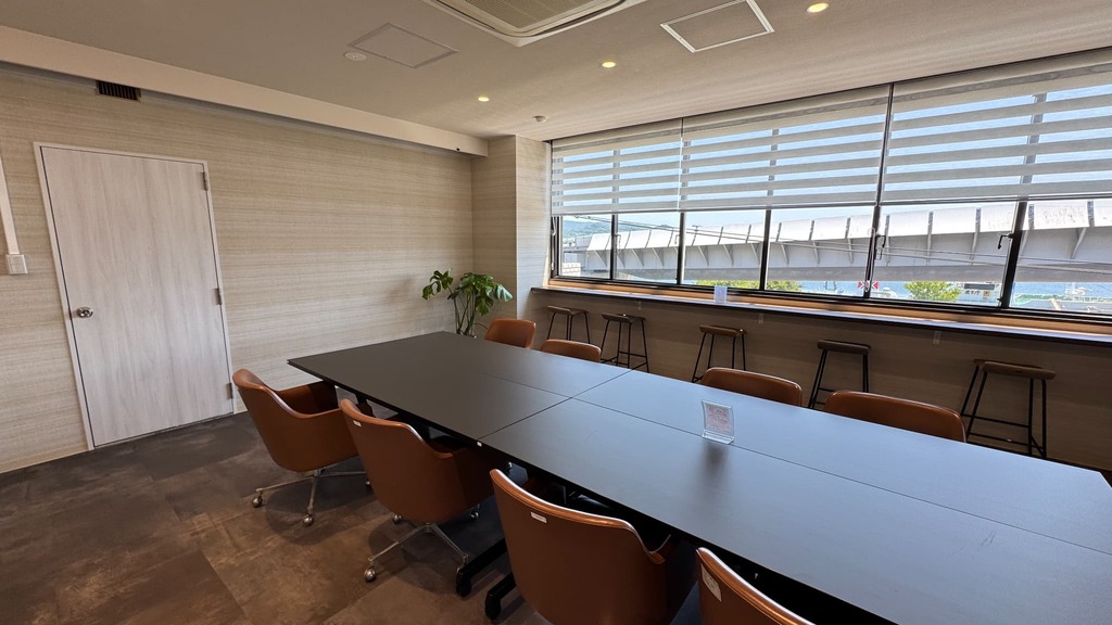 天草市役所牛深支所内にある、民間企業が運営している施設。綺麗なシェアオフィスや貸会議室、ラウンジなどがある。窓からはハイヤ大橋が見え、開放的。