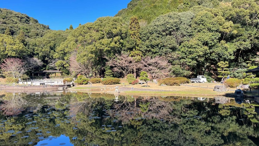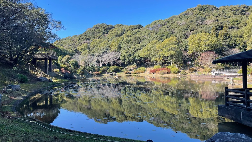 うしぶか公園は、水源地跡の池を中心に作られた回遊式の日本庭園。日本の都市公園100選に選ばれている。