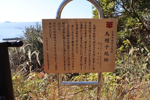 - 烏帽子坑(えぼしこう)は、明治30年に天草炭業株式会社が採炭のため下須(げす)島西岸の海を隔た「烏帽子瀬(えぼしせ)」に構築された海底炭鉱跡。創業を中止したあと約110年の間、何十回もの台風が来襲し大波を受けたにも関わらず、赤土と松ヤニを混ぜて接着したとされるアーチ型の赤レンガの坑口は、現代にもその姿を留めており、大変珍しい。烏帽子坑の奥の西海岸に沈む風景は「日本の夕陽百選」にも選ばれている。