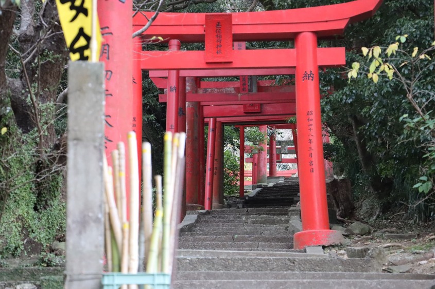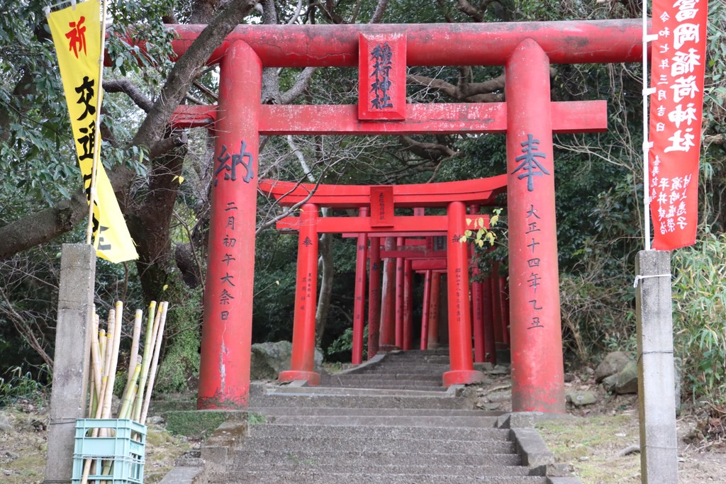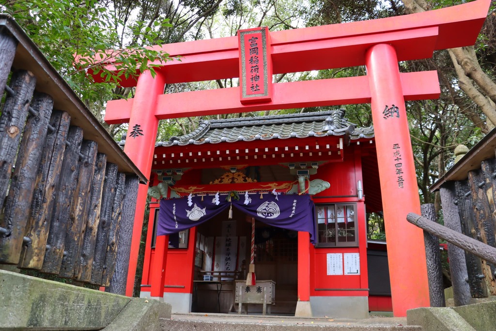 五穀豊穣と商売繁盛を祈る神社として知られる。富岡城跡に続く林道にある。