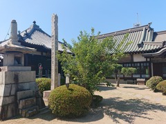 見事な高い石垣の上、塀に囲まれてそびえる寺院は、城郭を思わせるほど堂々とした寺構え。