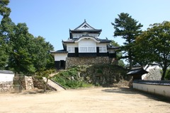 1683年修築。二層二階の層塔式の天守を持ち、現存天守12天守で唯一の山城。 大手門跡の石垣、段々に連なる三の丸の石垣は見どころの一つ。