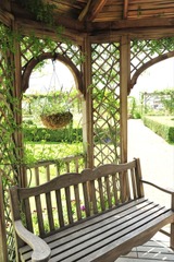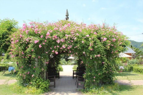 四季折々の草花が、さまざまな表情で庭園を彩っています。特に6月初めに咲き誇るバラのすばらしさは格別で、入り口すぐのバラで覆われたガゼボは見るものの目を奪います。