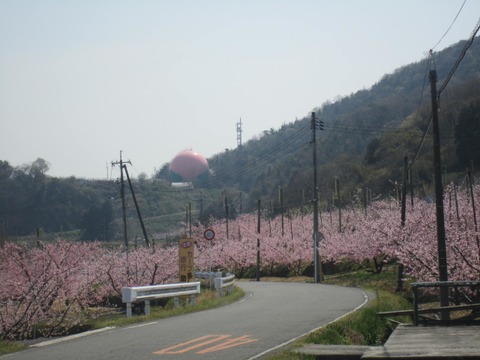 高倉山のふもと、古くからの桃の産地に直径22mの巨大な桃が出現。 ガスタンクをペインティングしたもので、緑の葉っぱをあしらったピンク色の球体が遠目からでもはっきりわかり、市のシンボルとして注目されて...