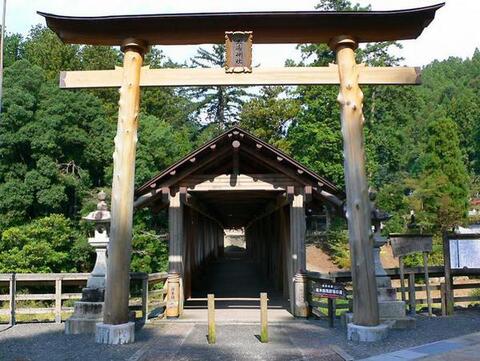 「坂本龍馬脱藩の道」脇にある神社。きっと龍馬も立ち寄ったであろう境内は、土俵が橋のたもとにあり歴史を感じる佇まい。木製の橋である御幸橋は風情があります。