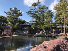 足摺岬にある、たくさんの観光客やお遍路さんが訪れるお寺。 本堂の前には池があり、荘厳な雰囲気です。