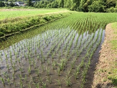 田んぼの中に、この場所だけ木で覆われているのが印象的な神社。