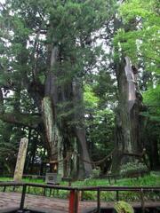 国の特別天然記念物にしていされている、推定樹齢3,000年の日本一大きな杉の木。 南北の2株が根元でくっついているため、夫婦杉の愛称で親しまれています。
