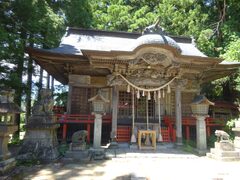 遠刈田温泉街のほど近くにあり、石段を上った先に本殿・拝殿を構える。蔵王連峰・刈田山頂にある刈田嶺神社の里宮として、冬の間はご神体が本殿に移されます。拝殿内の絵馬は蔵王町指定文化財となっています。