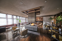建物内部の中庭が吹き抜けになっており、天井部が三角形のガラスで覆われている為、天候の影響をうけない開放的な空間となっています。 宿泊もレストラン利用も可。