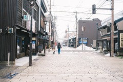 普段は穏やかな静けさが広がる七間商店街は、400年以上続く風情ある城下町の歴史を今も色濃く残しています。ここは「北陸の小京都」とも称され、いたるところで名水が清らかに流れているまち。
