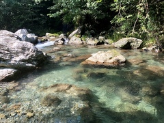四万十川の支流で最もきれいとも言われる黒尊川。 黒尊渓谷では、ブナやクマササの原生林を有し、夏は涼しく、秋は紅葉を楽しめます。