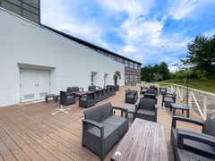 木工体験ができる研修施設。開放的なテラスからは吉備高原を一望することができます。