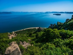 日本で最初に指定を受けた瀬戸内海国立公園で、玉野市と倉敷市にまたがる高さ235mの山頂からは瀬戸大橋の全景や瀬戸内海の多島美、対岸の四国連山のパノラマが一望できます。 渋川海岸に隣接し、「おじさん岩...