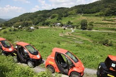 上山地区では移住者を中心に8300枚の棚田再生を行っています。1人乗り電気自動車の導入などでも注目を集めています。