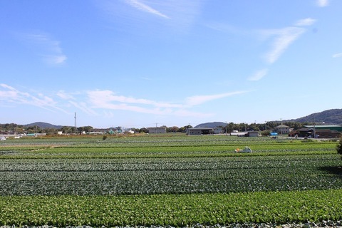 海辺の丘陵には畑が広がり、キャベツ、白菜、とうがん、南瓜などの作物が作付されている。