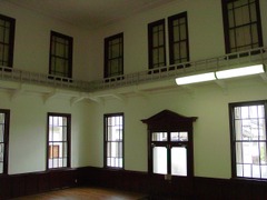 明治20年に建てられた警察署。今でも玄関ポーチに警察のマークが残る。外観は洋風だが、屋根や小屋組みは和建築。