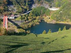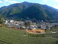 仁淀川のきれいな水により、古くからおいしいお茶の産地である仁淀川町。 切り立った斜面に広がる緑の茶畑の景色は、大地の力を感じられる。