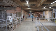 2025年に開業した、大熊町の玄関口・JR大野駅前の産業交流施設「CREVAおおくま」。コワーキング スペースや貸事務所が入る。曲線と木目が印象的な大きな現代的な建物と天井が高いエントランスホール が特徴的。...