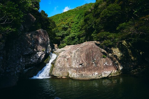 ドンドン渕は、岐宿町河務地区、権現岳の麓にあります。 駐車場から5分ほど木漏れ日を浴びながら進んでいくと、静かな山間に滝の水音が響いてきます。ドンドン渕は五島で最も大きな滝で、水が勢いよく流れ落ち、...