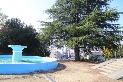 JR岡山駅前から東山ゆき路面電車に乗って、終着駅の「東山」で降りたら、目の前にある坂の上が東山公園。公園の中には噴水や広いグラウンドや遊具があります。この公園へ登る石段の階段を上がり、振り返ると昭和...