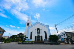 治以降、旧福江城下に五島各地から信徒が集まり、1914年、旧堂崎小教区から独立しました。 現教会は、1962年に建立されました。 同年の市中心部で発生した大火災「福江大火」では、奇跡的にこの教会だけは焼失...