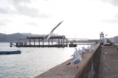 小豆島行きフェリーが発着する港。小さな白い待合所が海に面して建っています。 周辺の堤防には釣り人の姿もあり、フェリー発着時以外は静かな時が流れます。冬にはカモメも飛来します。海沿いのエリアでは不定期...