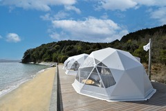 徒歩で一周40分ほどの無人島を貸切って、瀬戸内の多島美を広い画角で撮影することが可能です。古民家風のコテージ、ドームテントでのグランピング、山中のワイルドなキャンプスペースと様々なシチュエーションで...