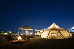倉敷駅から車で15分の立地にありながら、視界いっぱいに広がる空と、開けた景色が一望できるグランピング施設。 夜には岡山・倉敷の夜景もご覧いただけます。 敷地内にはカフェ併設の本棟、グランピングテント、...