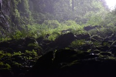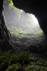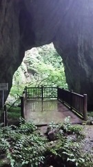 国指定天然記念物。地下の洞窟だった場所(鍾乳洞)が一部を残して陥没し、高さ40mの石灰岩の巨大アーチとして残っています。洞口から吹き出す低温多湿な空気によって夏でも涼しく高山性や北方系のコケ植物なども...