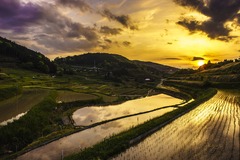 岡山県の中北部、久米郡美咲町の標高400mの山間地に、大きな谷全体にぐるりと360度、すり鉢状に約750枚の棚田が広がっています。 棚田の織りなす鎬模様が独特の曲線をもって描き出す光景は見事です。四季折々に変...