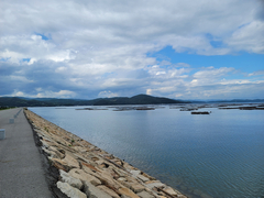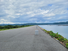 約2キロの直線(中央部が凹む)で、堤防東側には牡蠣筏が浮かぶ景色が広がる。西側には湿地帯やメガソーラーの景観が広がる。 通常は車両進入禁止であるが、許可を得て車両を通行することができる。