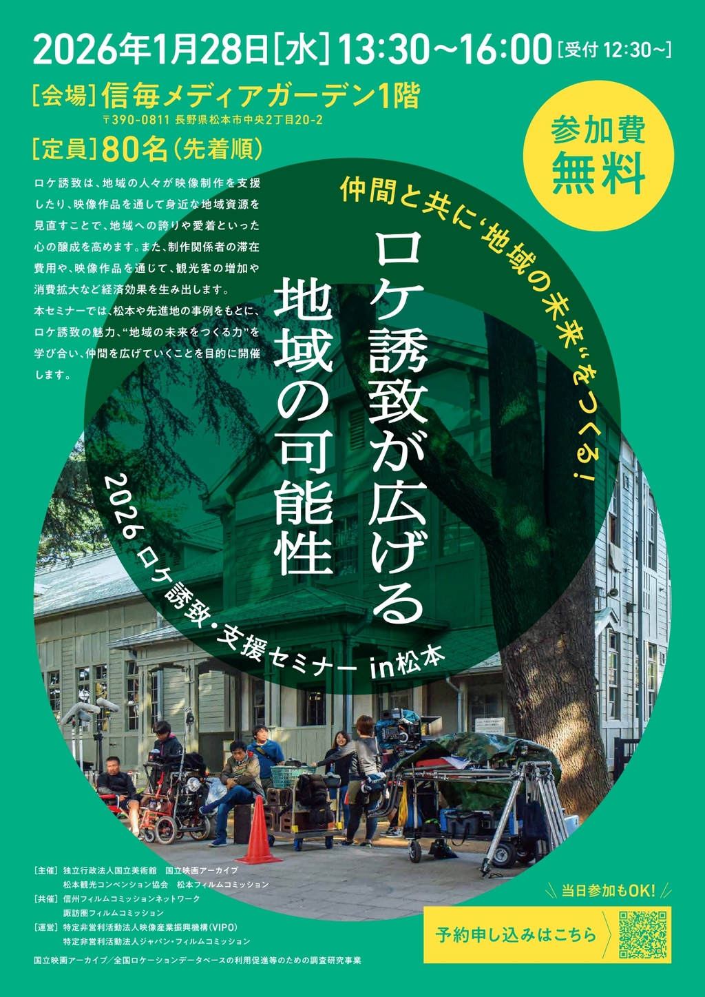 1月28日(水)に長野県松本市にて、独立行政法人 国立美術館 国立映画アーカイブ様および松本フィルムコミッション様主催の「ロケ誘致・撮影支援セミナー in 松本 」が開催されます。