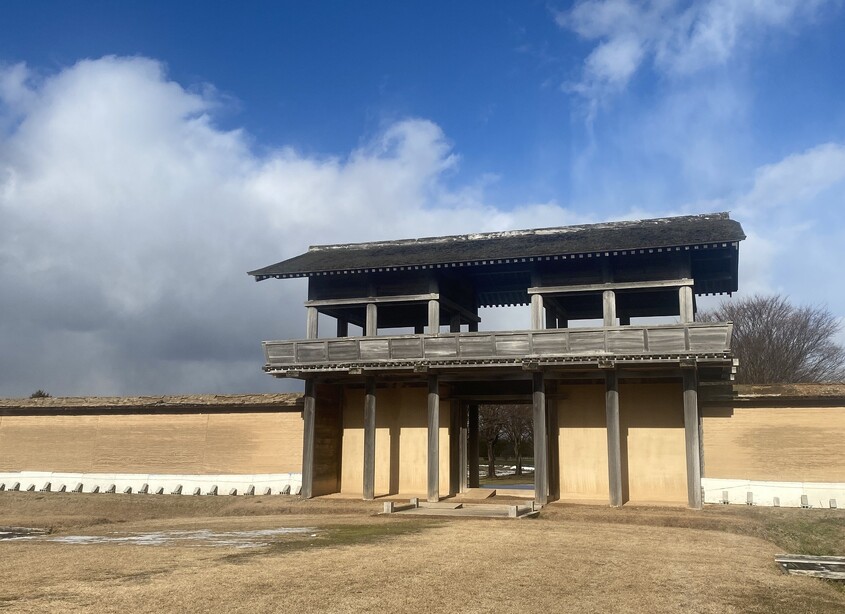 803年坂上田村麻吕降服阿弖流为,作为统治虾夷的据点,建造了边长约900米的巨大城池,其中约250米被修复成了公园。在水田地带中,以其雄伟而著称。